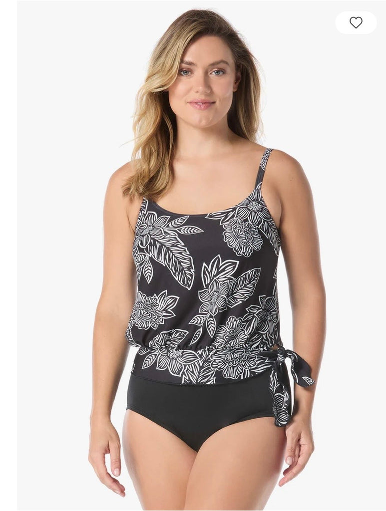 • Blouson top with waist tie