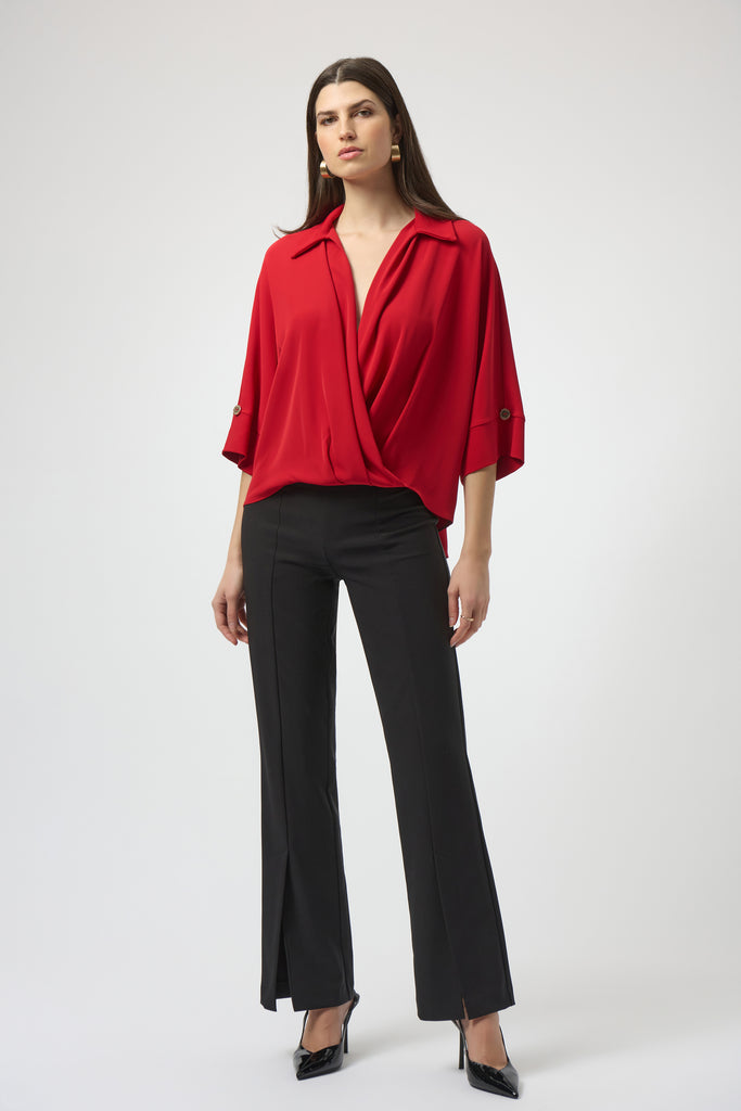 JOSEPH RIBKOFF 254031 WOVEN TWILL BOXY WRAP TOP