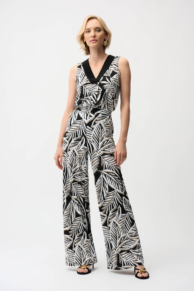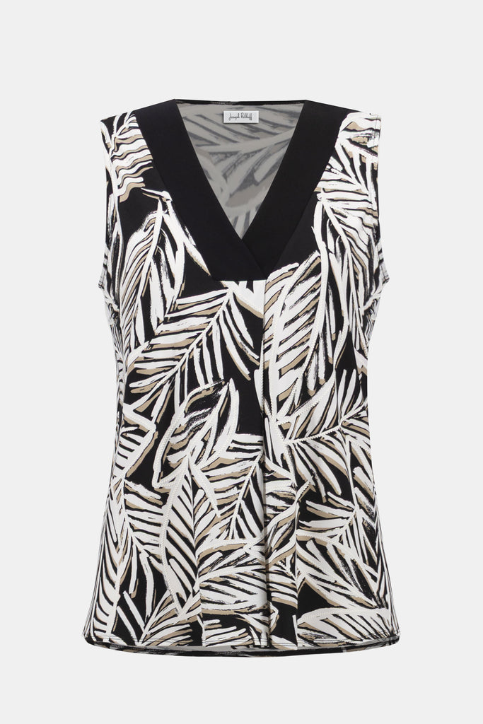 JOSEPH RIBKOFF 261151 Silky Knit Tropical Print Sleeveless Trapeze Top