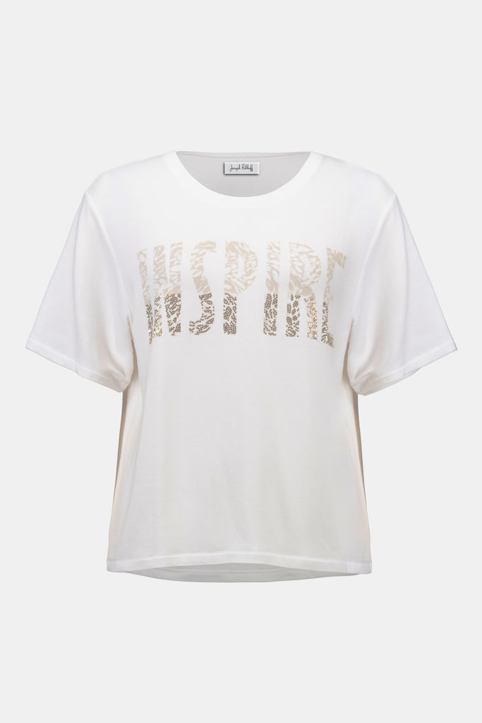 JOSEPH RIBKOFF 261967 FRONT PRINT STRAIGHT T-SHIRT WITH RHINESTONES