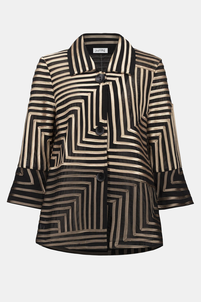 JOSEPH RIBKOFF 261980 Satin And Mesh Abstract Print Jacket With Bell Sleeve