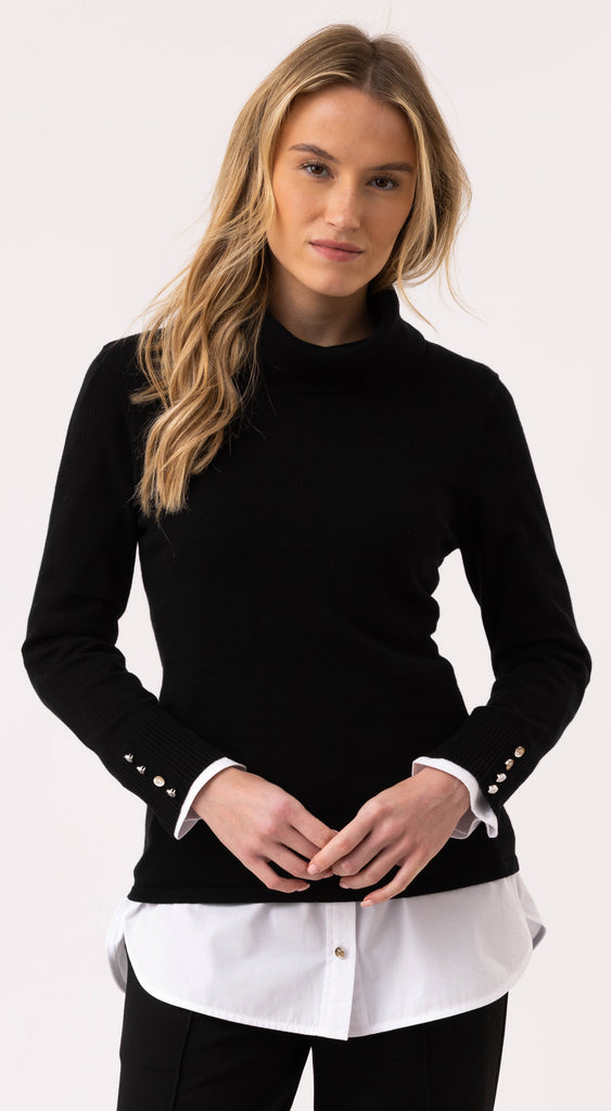 MARBLE 8069 COWL NECK SWEATER WITH BUTTON SLEEVE DETAIL